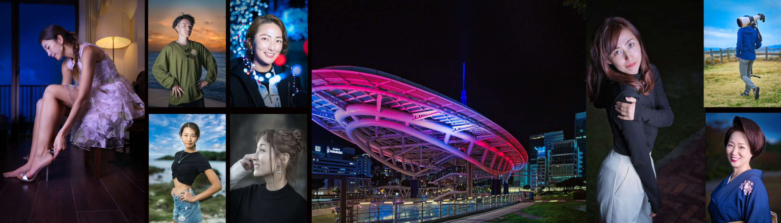 当ウェブページをご覧いただきありがとうございます。このウェブページの作成にあたり協力していただいた方々に感謝しています。私にとってポートレートとは、被写体の魅力を最大限に表現する事です。その為には被写体の方とポージングの改善を行いながらドラマチックかつ超シャープに撮影する事です。よって撮影中のコミュニケーションは非常に重要です。可能であれば仲の良い友人を誘い照明係として手伝って頂く事で緊張がほぐれアイデアが膨らみ素晴らしい写真となります。お手伝いして頂いた友人も僅かですが写真を撮ってプレゼント致します。日中でもストロボを多用するたくさんの撮影レシピがあります。お会いできることを楽しみにしております。