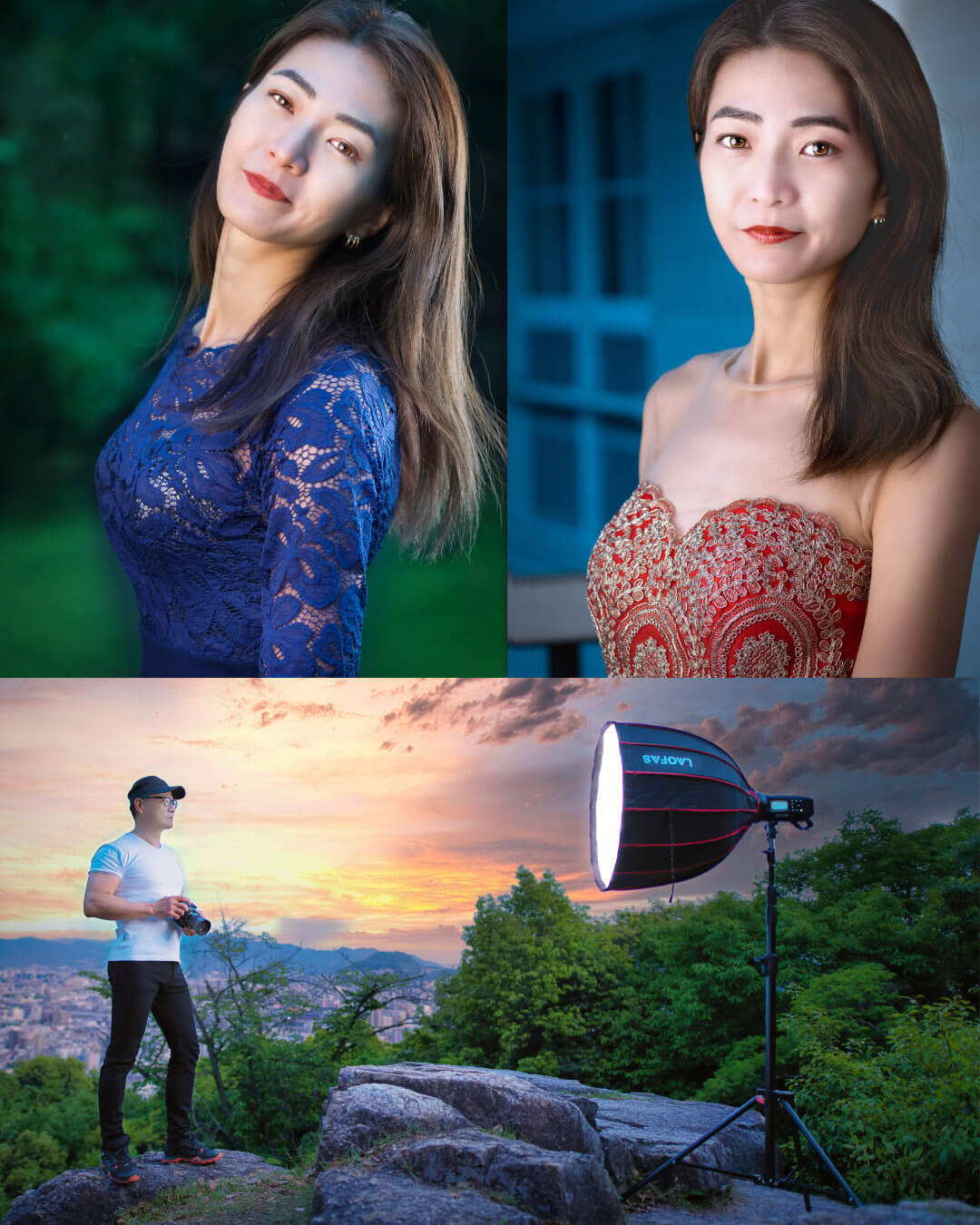 背景よりも大型ストロボを使用して人物を超シャープに撮影しポージングなどバランスを考え被写体を際立たせる撮影となります。